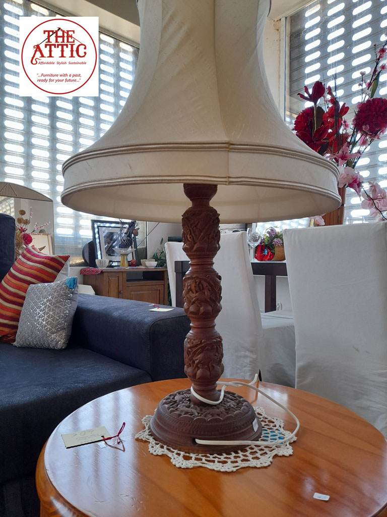 Lámpara de mesa de teca tallada con gran detalle - 40€